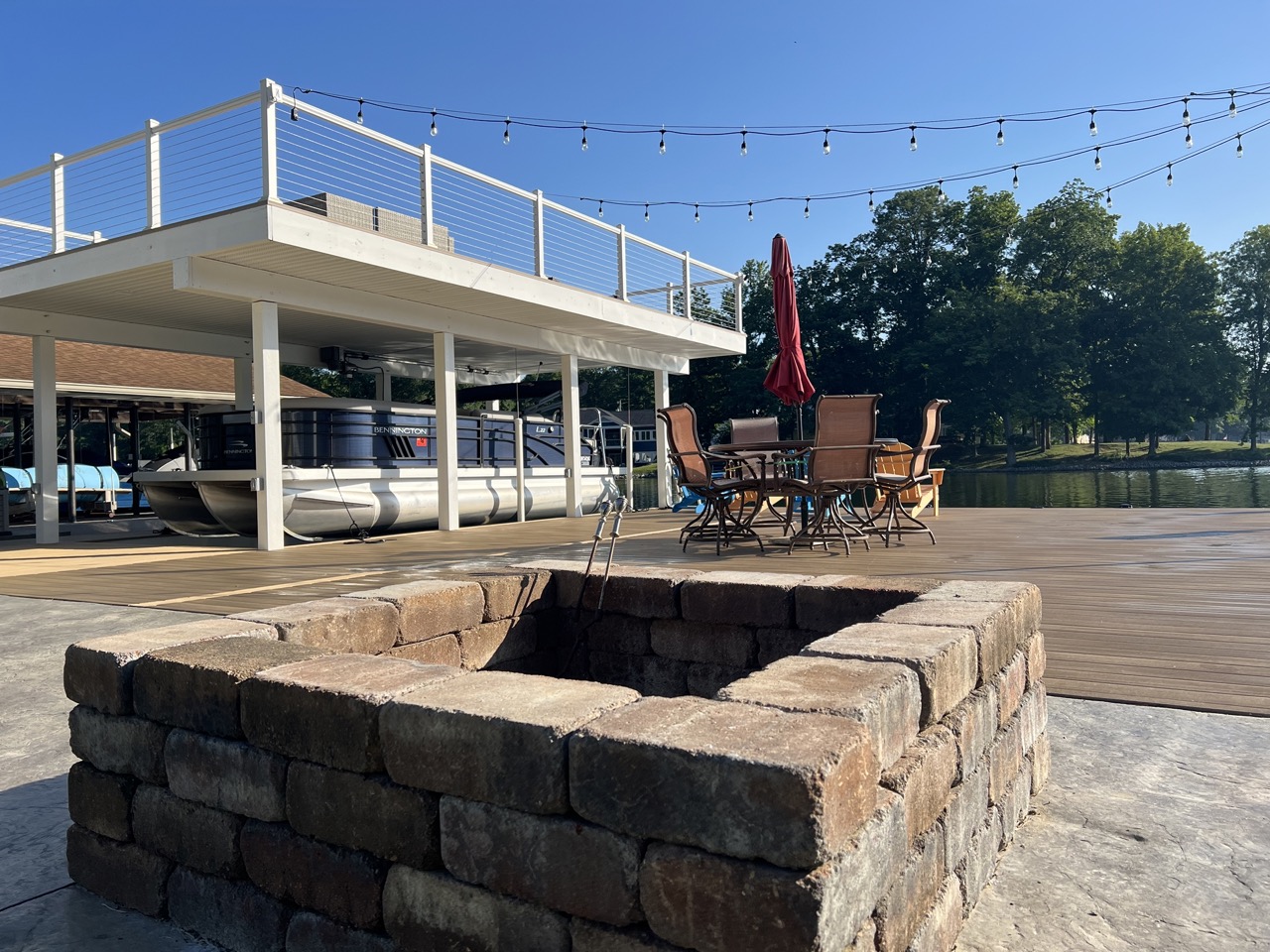 All-in-One Lakefront Setup – Boating, jet skiing, jumping, lounging, and fireside evenings—all in one seamless space.